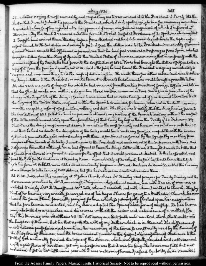 View full, authoritative transcriptions with page images of the diaries at John Quincy Adams Digital Diary part of the Primary Source Cooperative at the MHS.