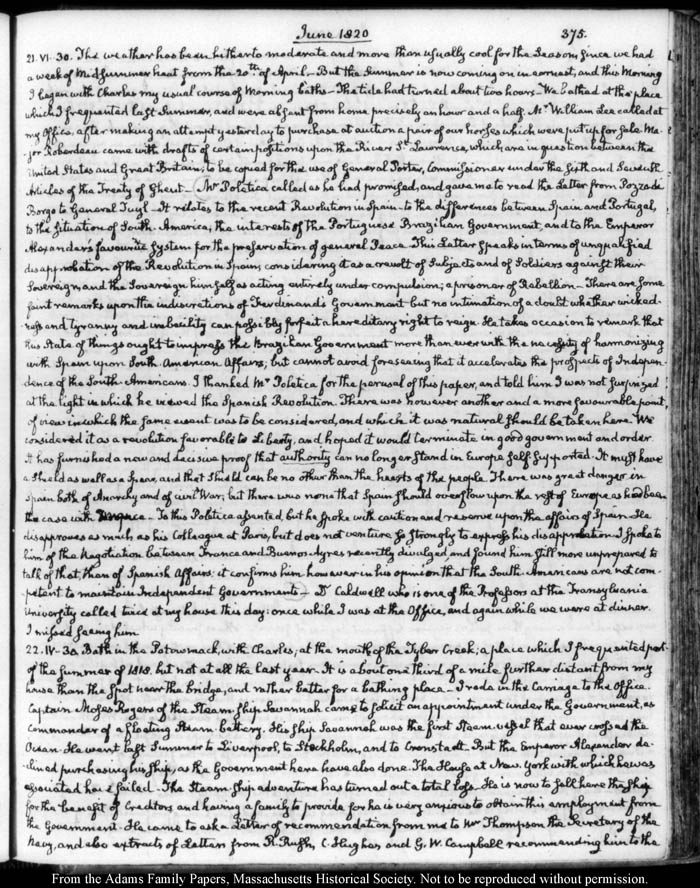 John Quincy Adams diary 31, 1 January 1819 - 20 March 1821, 10 November 1824 - 6 December 1824, page 375