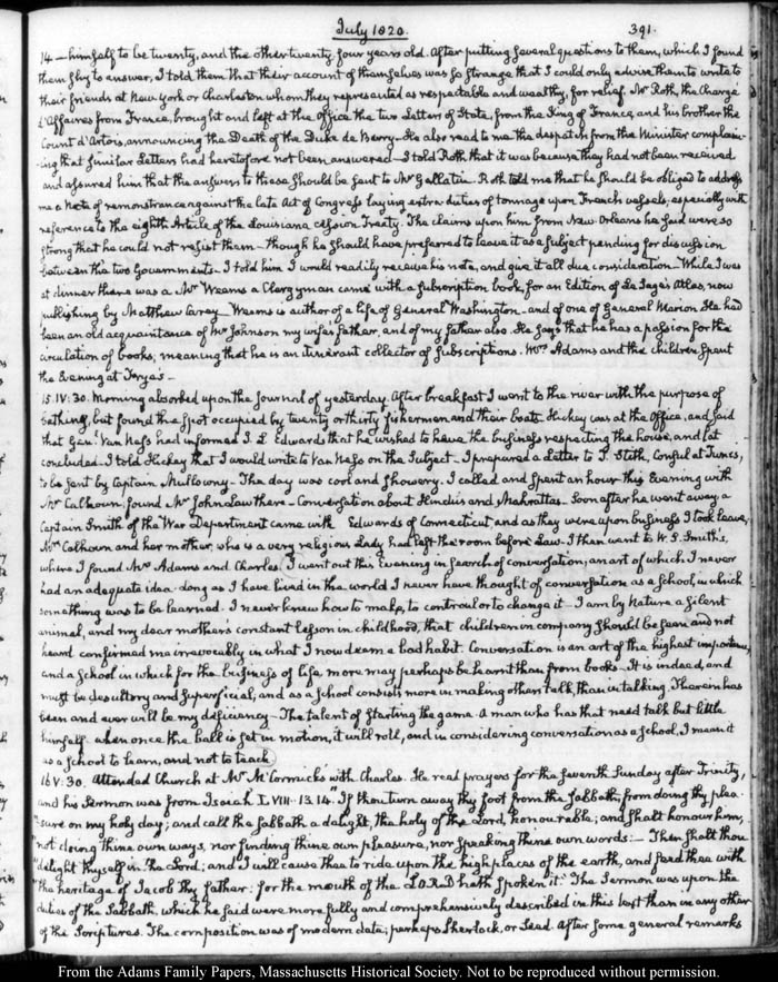 John Quincy Adams diary 31, 1 January 1819 - 20 March 1821, 10 November 1824 - 6 December 1824, page 391