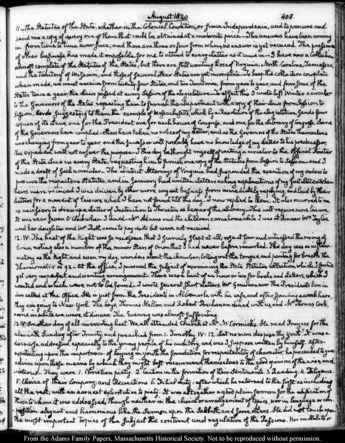 John Quincy Adams diary 31, 1 January 1819 - 20 March 1821, 10 November 1824 - 6 December 1824, page 405