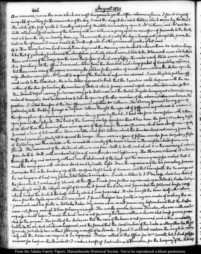 John Quincy Adams diary 31, 1 January 1819 - 20 March 1821, 10 November 1824 - 6 December 1824, page 406
