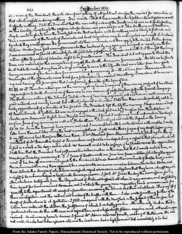 John Quincy Adams diary 31, 1 January 1819 - 20 March 1821, 10 November 1824 - 6 December 1824, page 422