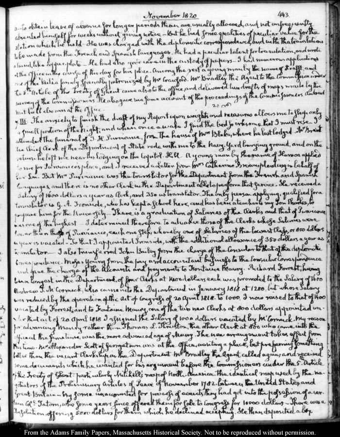 John Quincy Adams diary 31, 1 January 1819 - 20 March 1821, 10 November 1824 - 6 December 1824, page 443