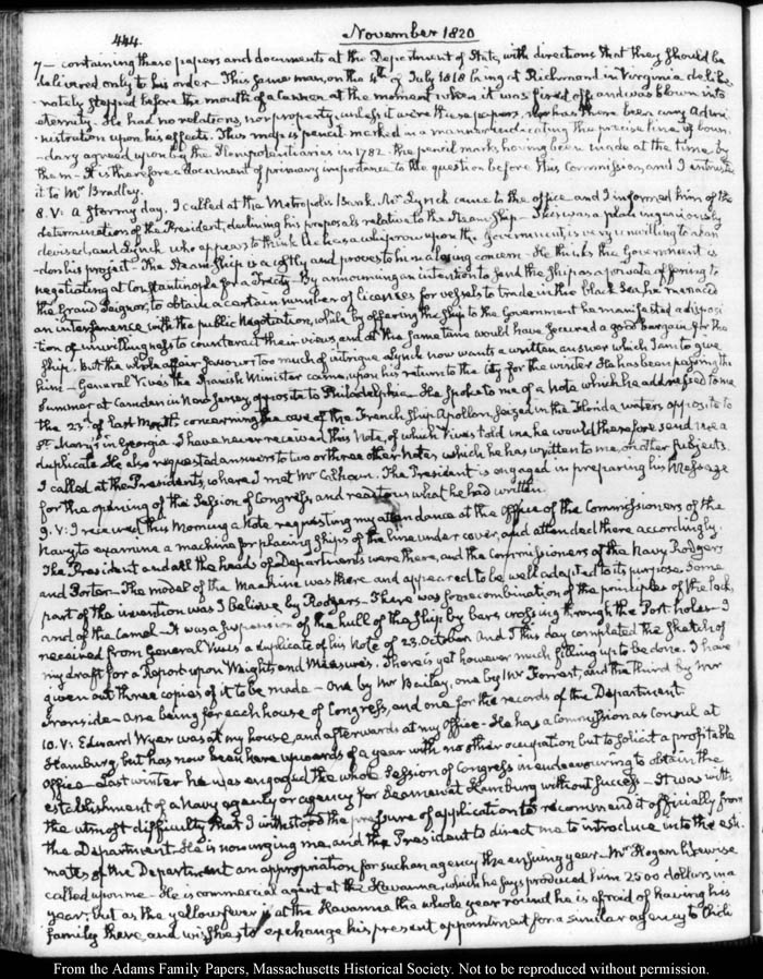 John Quincy Adams diary 31, 1 January 1819 - 20 March 1821, 10 November 1824 - 6 December 1824, page 444