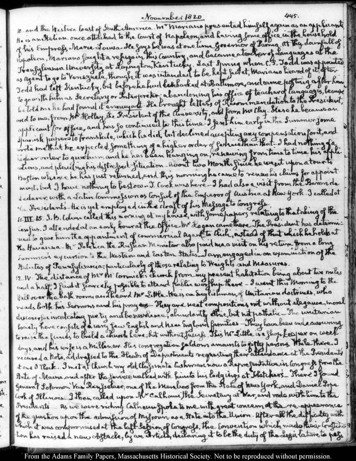 John Quincy Adams diary 31, 1 January 1819 - 20 March 1821, 10 November 1824 - 6 December 1824, page 445