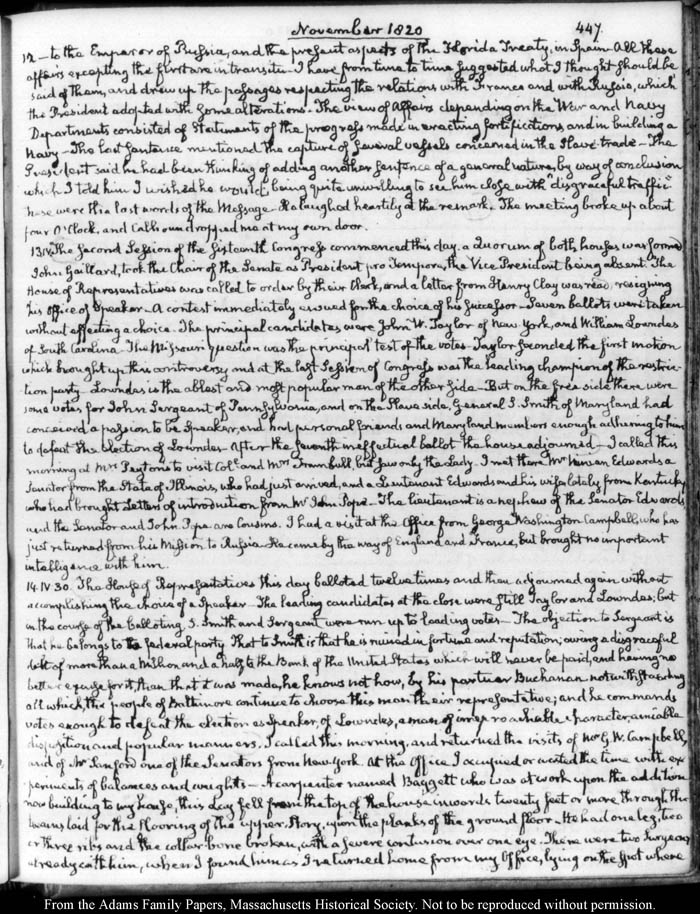 John Quincy Adams diary 31, 1 January 1819 - 20 March 1821, 10 November 1824 - 6 December 1824, page 447