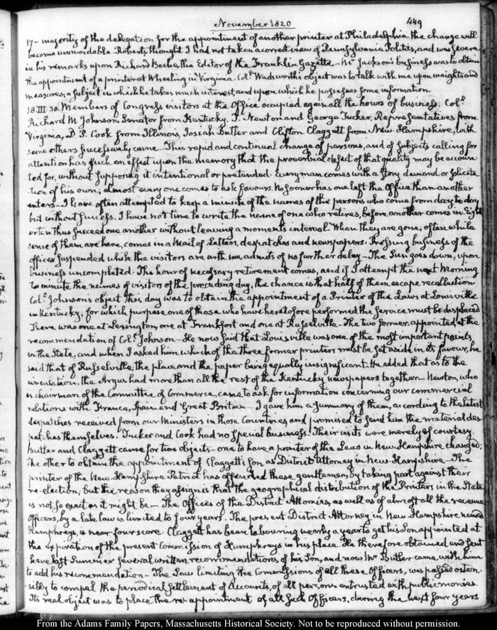John Quincy Adams diary 31, 1 January 1819 - 20 March 1821, 10 November 1824 - 6 December 1824, page 449