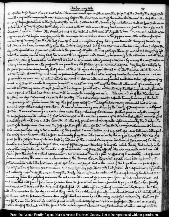 View full, authoritative transcriptions with page images of the diaries at John Quincy Adams Digital Diary part of the Primary Source Cooperative at the MHS.