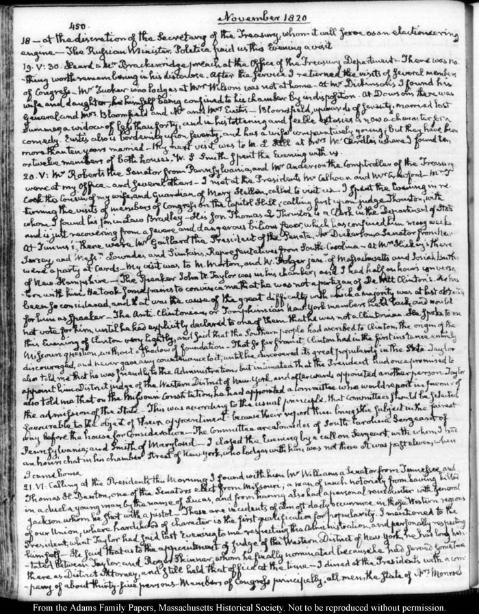 John Quincy Adams diary 31, 1 January 1819 - 20 March 1821, 10 November 1824 - 6 December 1824, page 450
