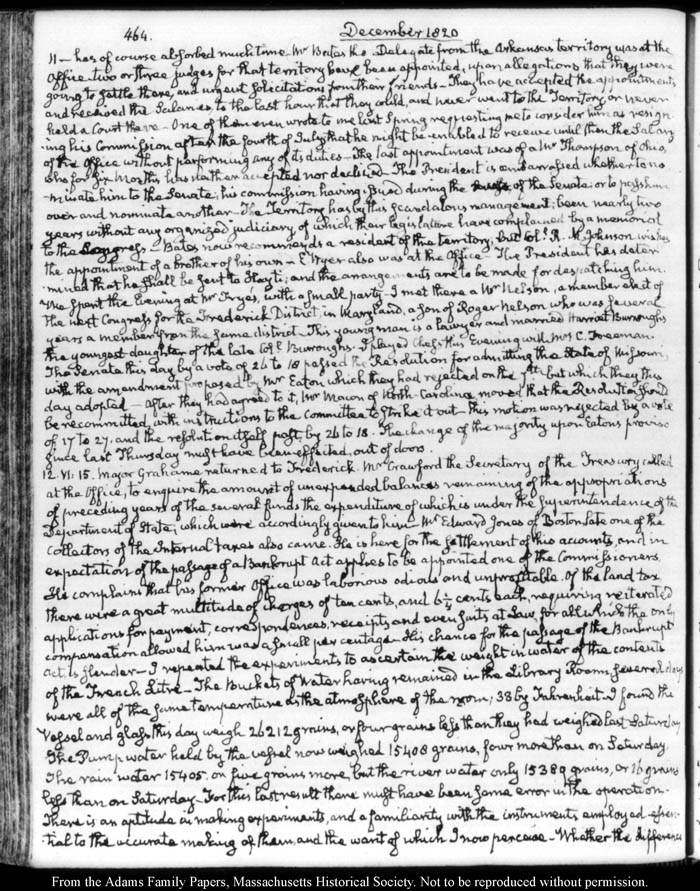 John Quincy Adams diary 31, 1 January 1819 - 20 March 1821, 10 November 1824 - 6 December 1824, page 464