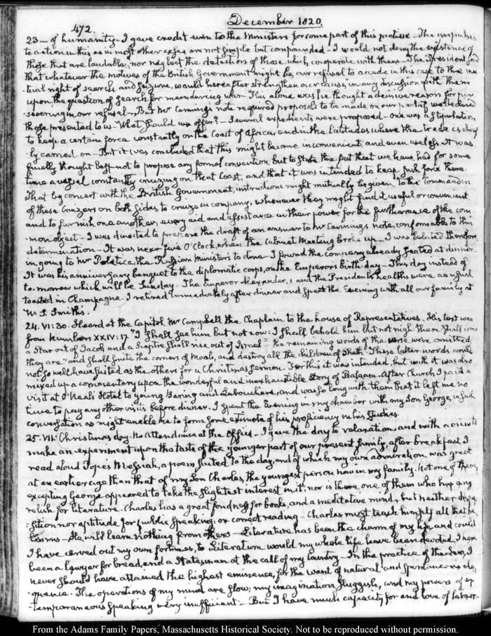 John Quincy Adams diary 31, 1 January 1819 - 20 March 1821, 10 November 1824 - 6 December 1824, page 472