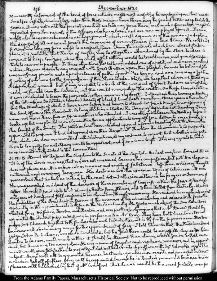 John Quincy Adams diary 31, 1 January 1819 - 20 March 1821, 10 November 1824 - 6 December 1824, page 476