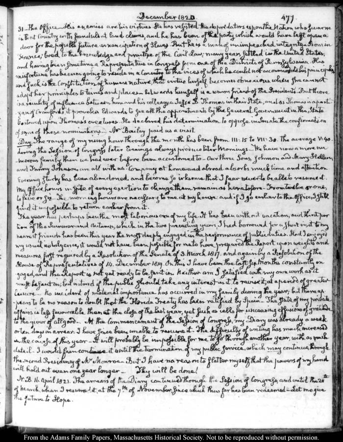 John Quincy Adams diary 31, 1 January 1819 - 20 March 1821, 10 November 1824 - 6 December 1824, page 477