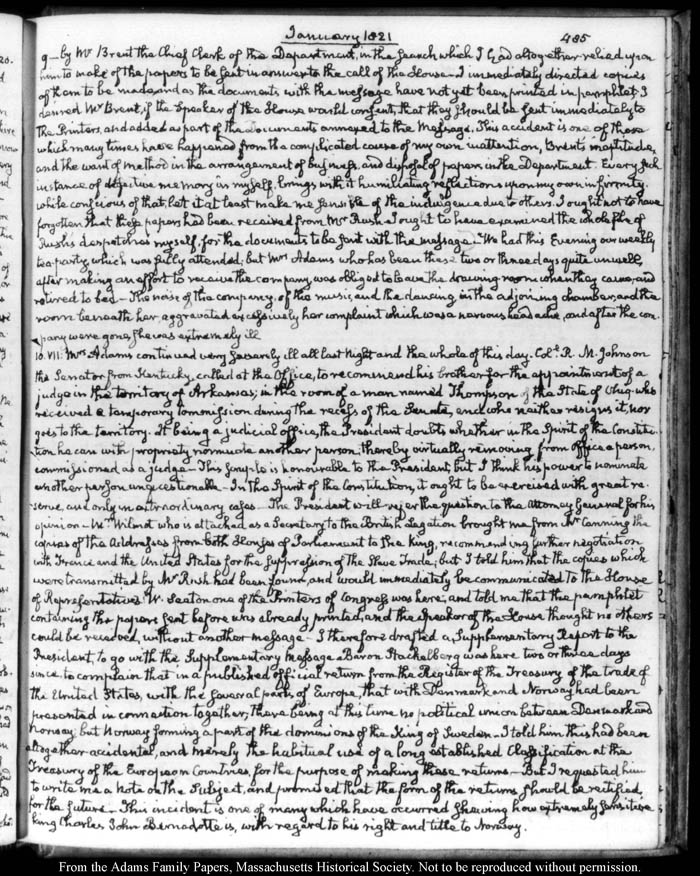 John Quincy Adams diary 31, 1 January 1819 - 20 March 1821, 10 November 1824 - 6 December 1824, page 485