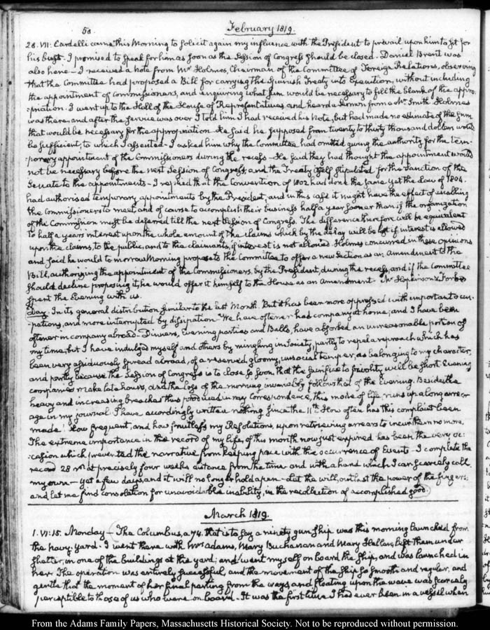 View full, authoritative transcriptions with page images of the diaries at John Quincy Adams Digital Diary part of the Primary Source Cooperative at the MHS.