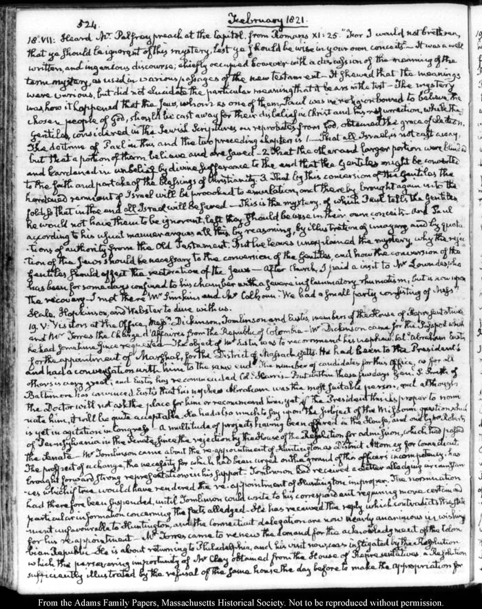 John Quincy Adams diary 31, 1 January 1819 - 20 March 1821, 10 November 1824 - 6 December 1824, page 524
