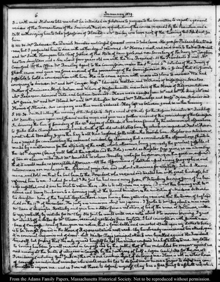 View full, authoritative transcriptions with page images of the diaries at John Quincy Adams Digital Diary part of the Primary Source Cooperative at the MHS.