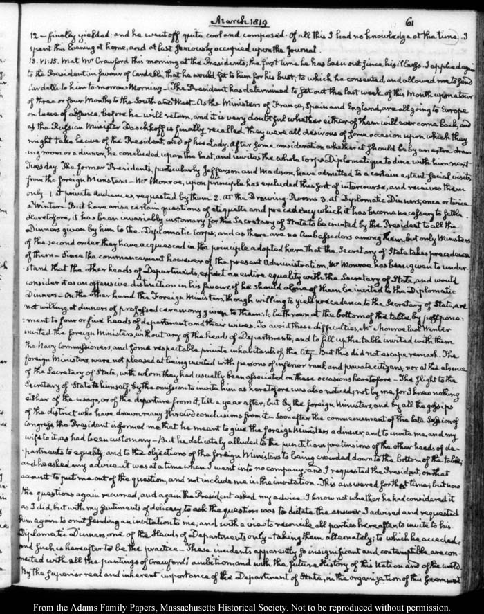 John Quincy Adams diary 31, 1 January 1819 - 20 March 1821, 10 November 1824 - 6 December 1824, page 61
