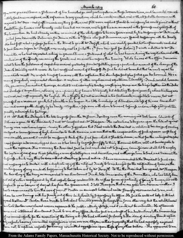 View full, authoritative transcriptions with page images of the diaries at John Quincy Adams Digital Diary part of the Primary Source Cooperative at the MHS.