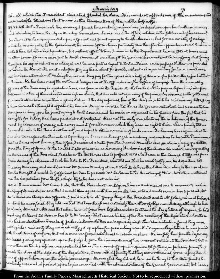 John Quincy Adams diary 31, 1 January 1819 - 20 March 1821, 10 November 1824 - 6 December 1824, page 71