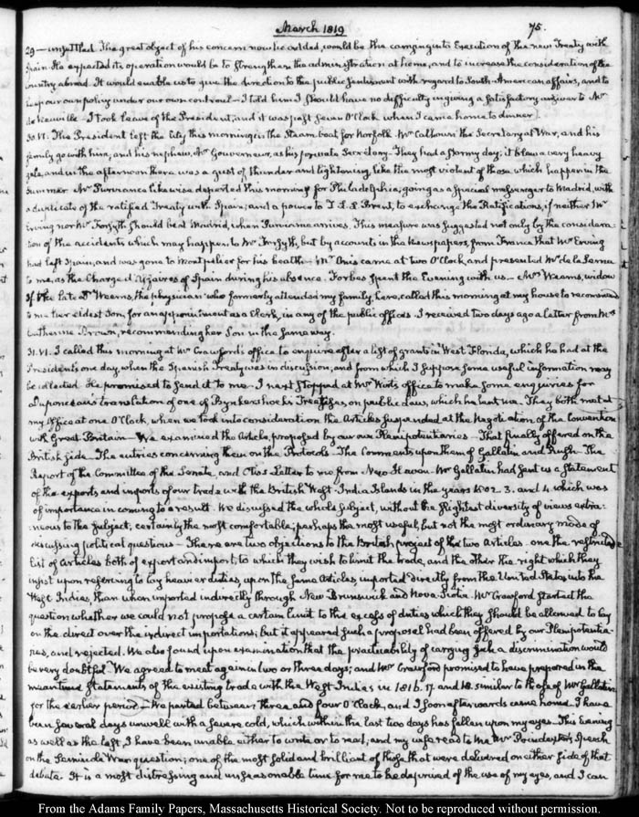 John Quincy Adams diary 31, 1 January 1819 - 20 March 1821, 10 November 1824 - 6 December 1824, page 75
