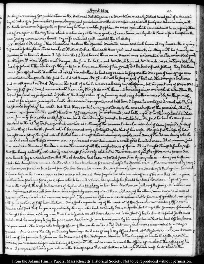 View full, authoritative transcriptions with page images of the diaries at John Quincy Adams Digital Diary part of the Primary Source Cooperative at the MHS.