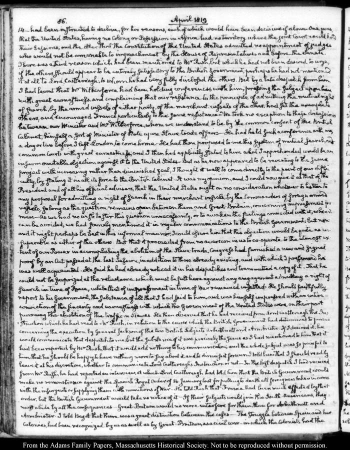 John Quincy Adams diary 31, 1 January 1819 - 20 March 1821, 10 November 1824 - 6 December 1824, page 86