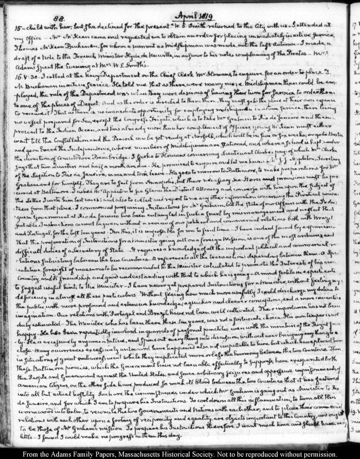 John Quincy Adams diary 31, 1 January 1819 - 20 March 1821, 10 November 1824 - 6 December 1824, page 88