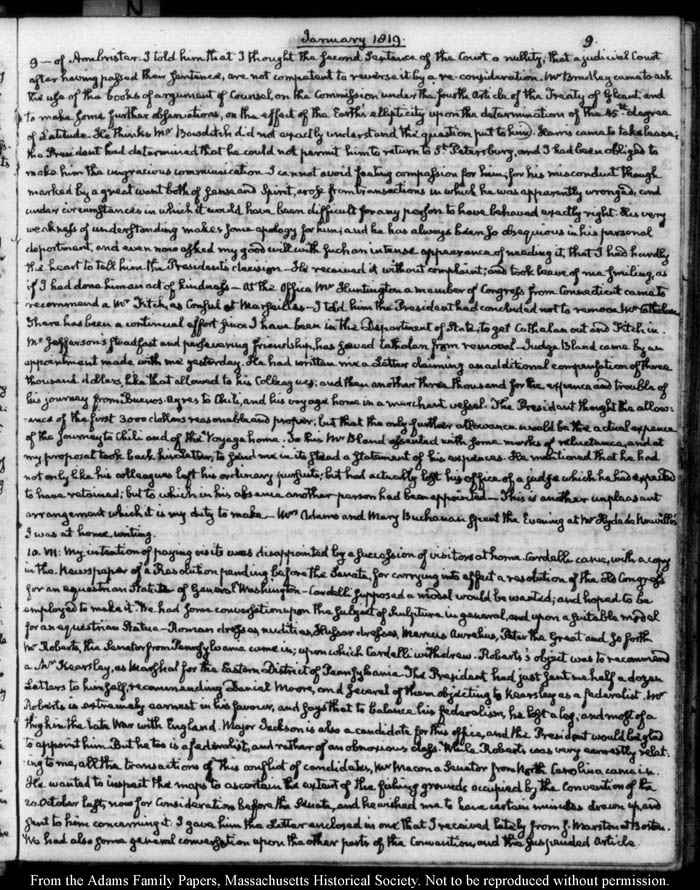 John Quincy Adams diary 31, 1 January 1819 - 20 March 1821, 10 November 1824 - 6 December 1824, page 9