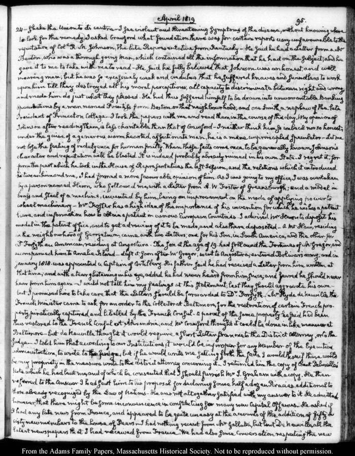 John Quincy Adams diary 31, 1 January 1819 - 20 March 1821, 10 November 1824 - 6 December 1824, page 95