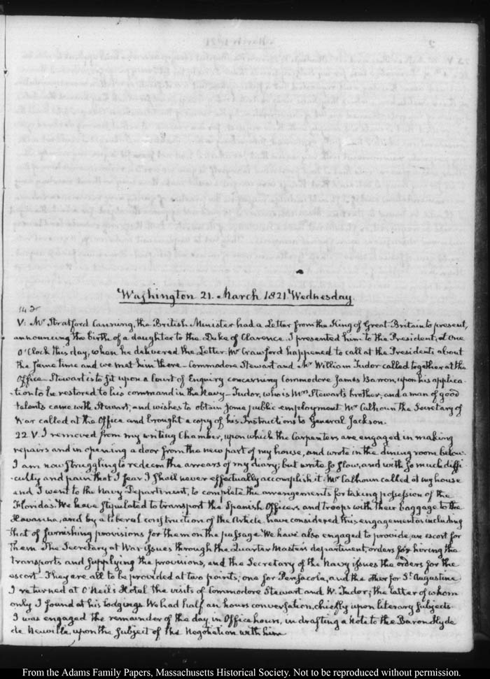 John Quincy Adams diary 32, 21 March 1821 - 30 November 1822 (with gaps), page 1