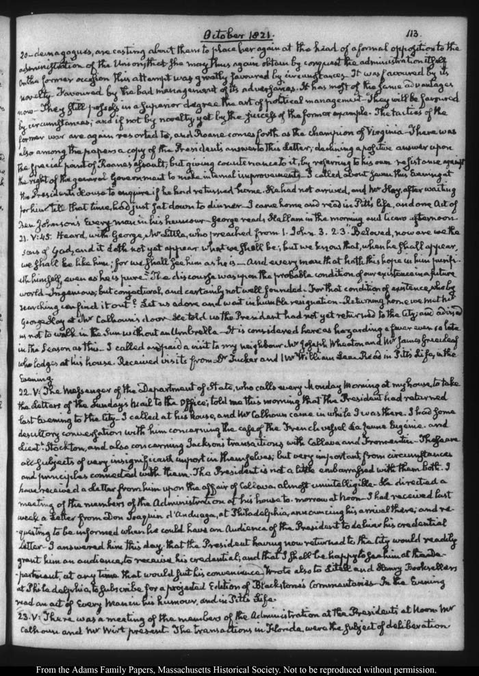 John Quincy Adams diary 32, 21 March 1821 - 30 November 1822 (with gaps),