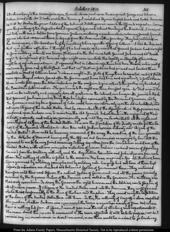 John Quincy Adams diary 32, 21 March 1821 - 30 November 1822 (with gaps), page 115
