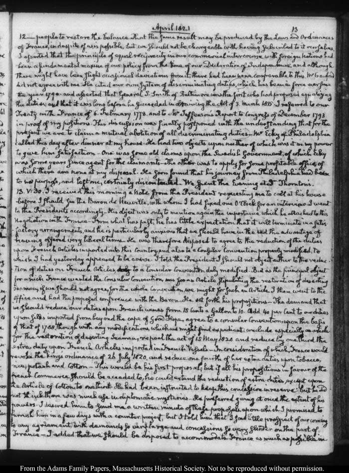 John Quincy Adams diary 32, 21 March 1821 - 30 November 1822 (with gaps), page 13