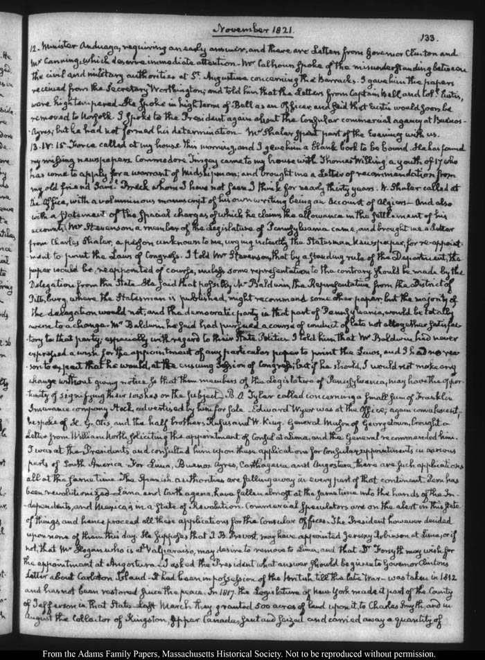 John Quincy Adams diary 32, 21 March 1821 - 30 November 1822 (with gaps), page 133