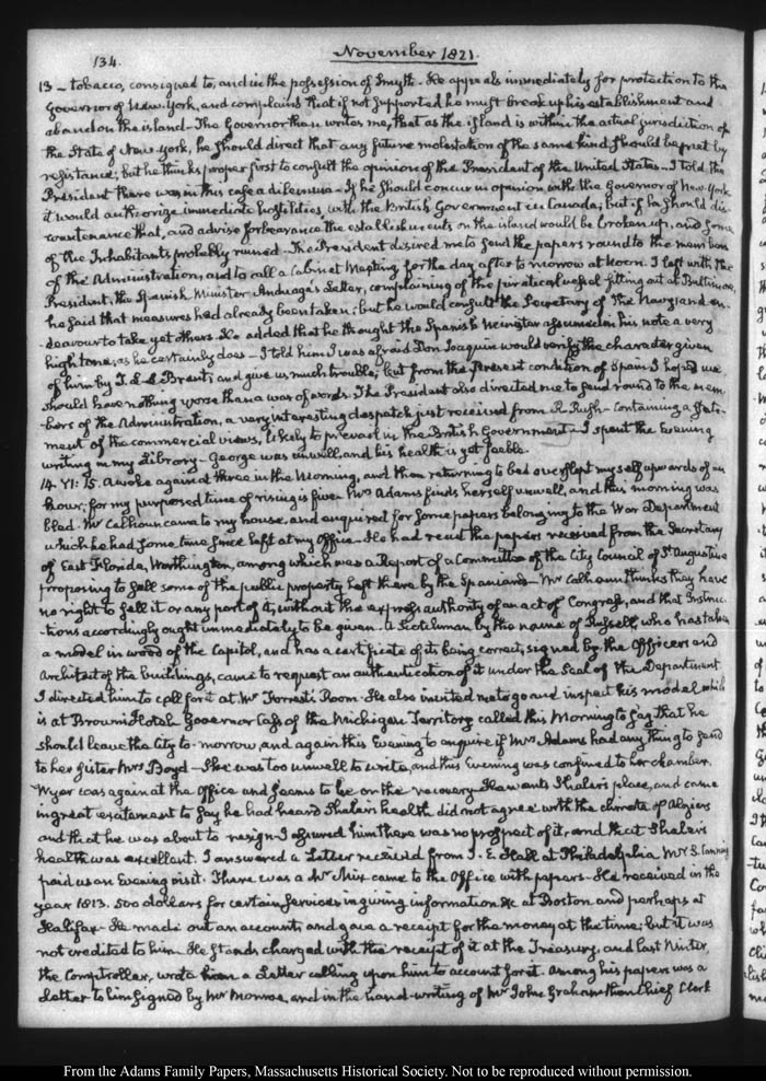 John Quincy Adams diary 32, 21 March 1821 - 30 November 1822 (with gaps), page 134