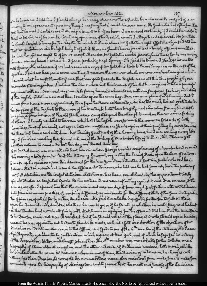 John Quincy Adams diary 32, 21 March 1821 - 30 November 1822 (with gaps), page 137