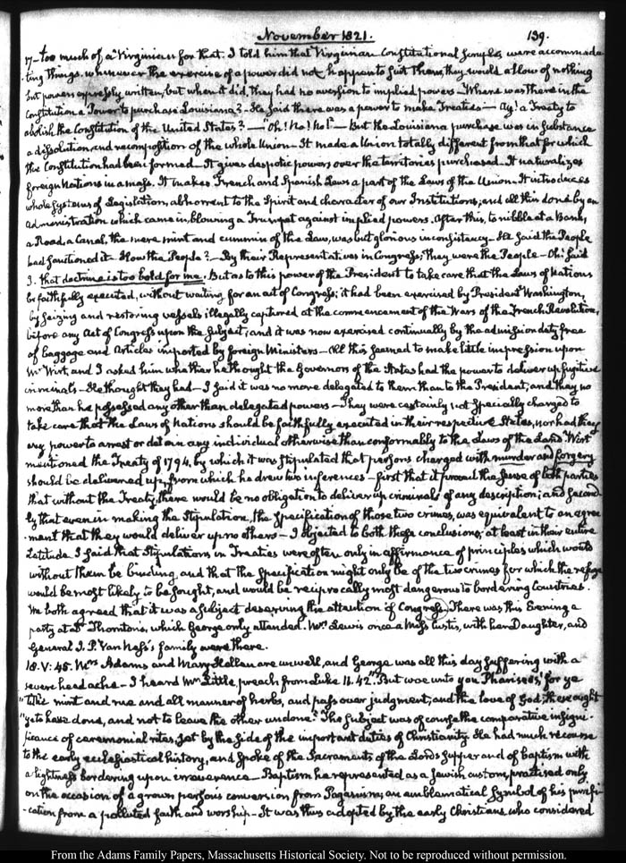 John Quincy Adams diary 32, 21 March 1821 - 30 November 1822 (with gaps), page 139