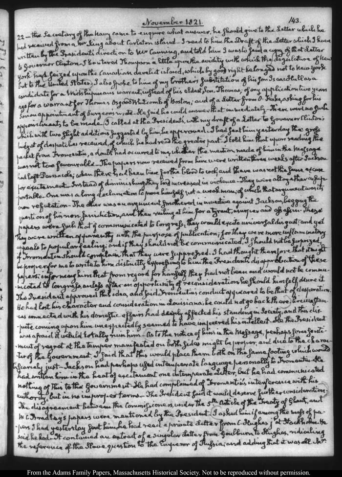 John Quincy Adams diary 32, 21 March 1821 - 30 November 1822 (with gaps), page 143
