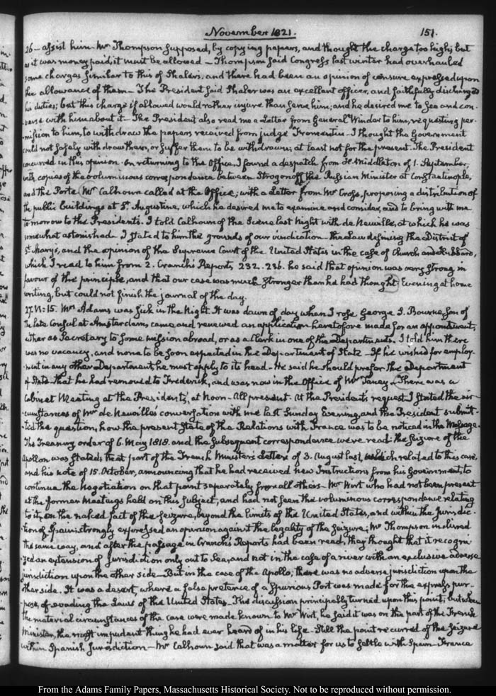 John Quincy Adams diary 32, 21 March 1821 - 30 November 1822 (with gaps), page 151