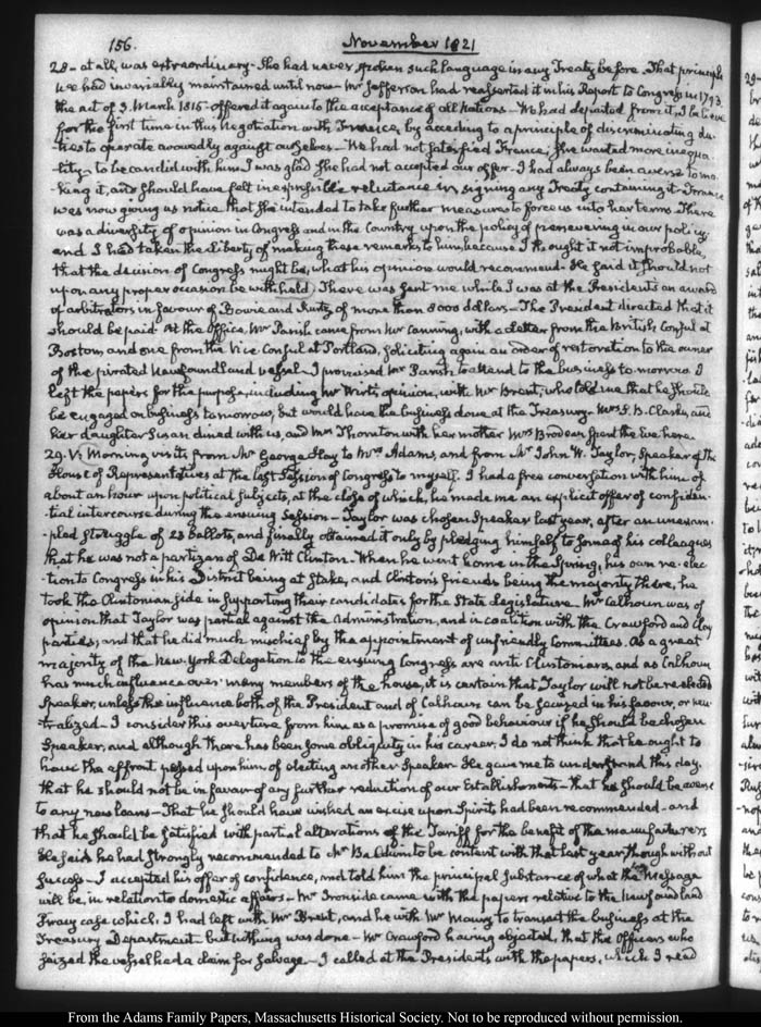 John Quincy Adams diary 32, 21 March 1821 - 30 November 1822 (with gaps), page 156