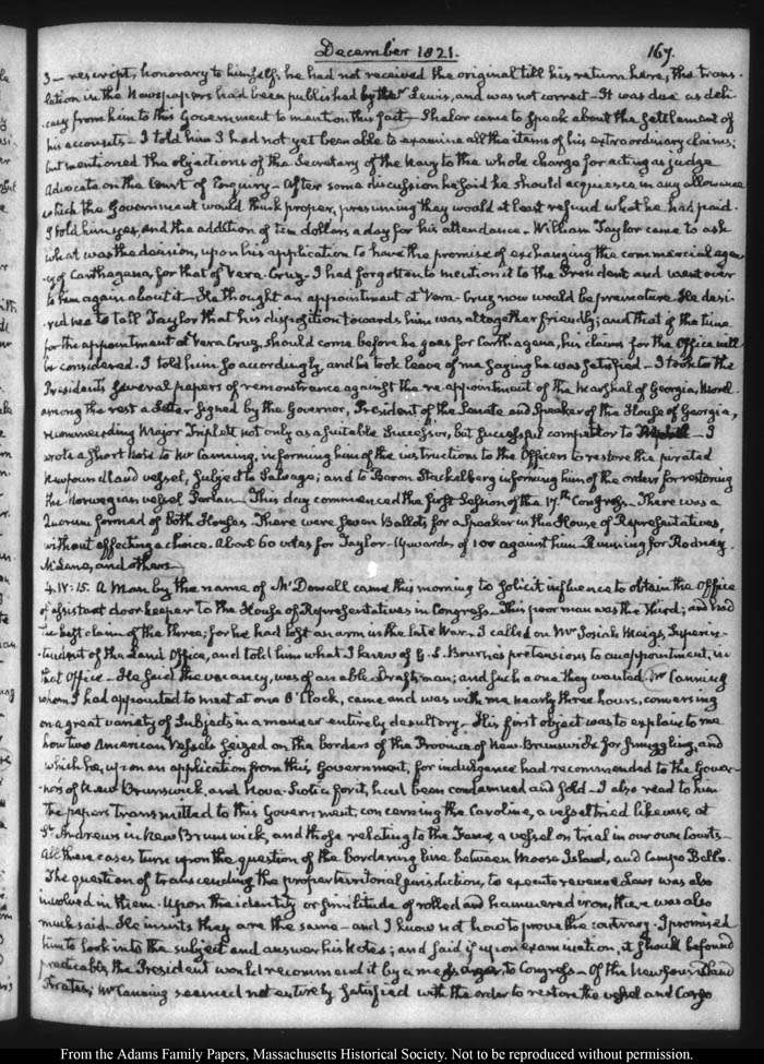John Quincy Adams diary 32, 21 March 1821 - 30 November 1822 (with gaps), page 167