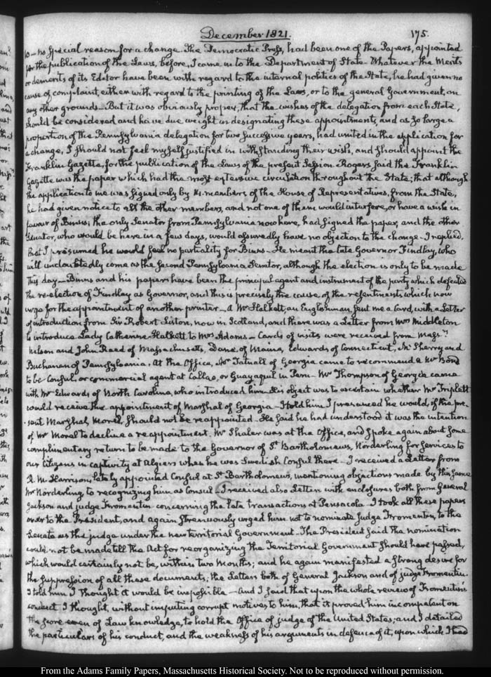 John Quincy Adams diary 32, 21 March 1821 - 30 November 1822 (with gaps), page 175