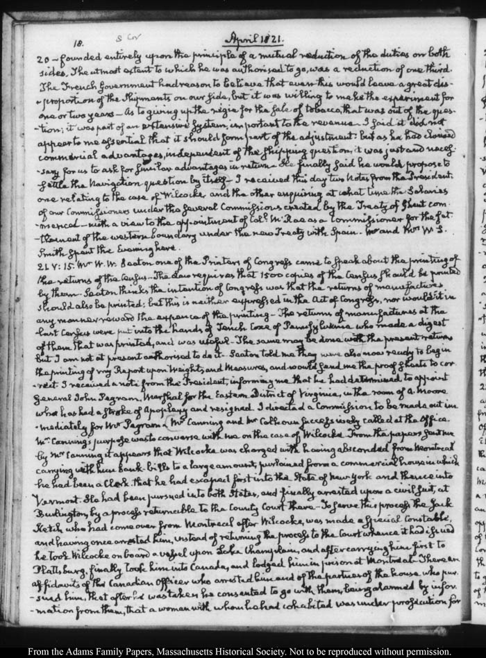 John Quincy Adams diary 32, 21 March 1821 - 30 November 1822 (with gaps), page 18