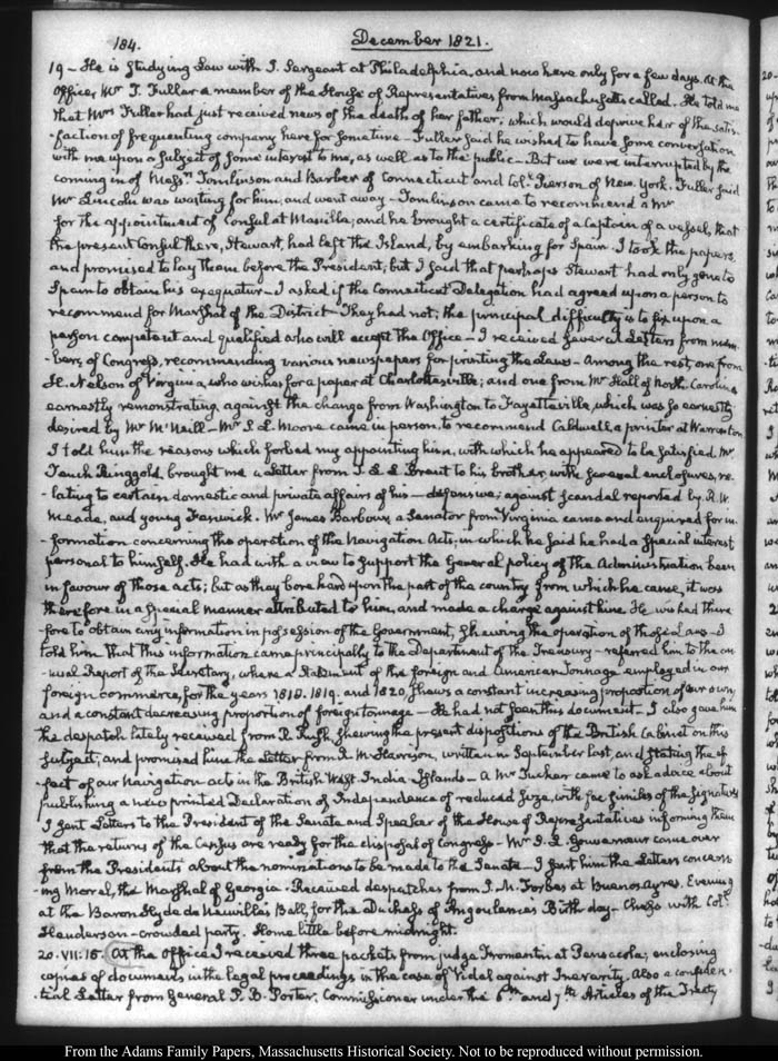 John Quincy Adams diary 32, 21 March 1821 - 30 November 1822 (with gaps), page 184