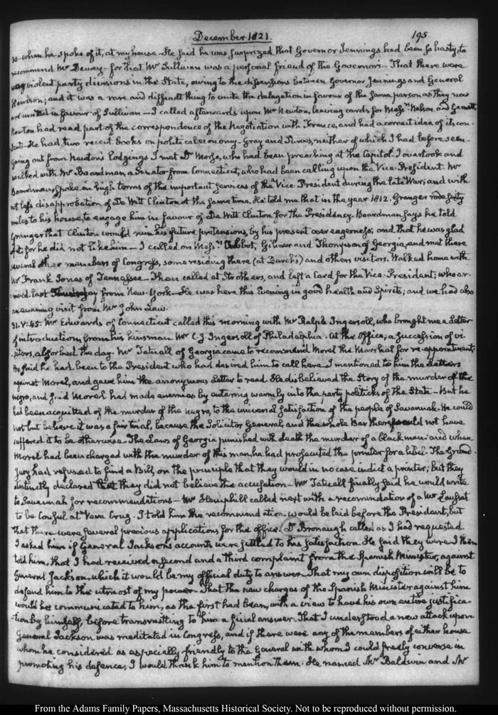 John Quincy Adams diary 32, 21 March 1821 - 30 November 1822 (with gaps), page 195