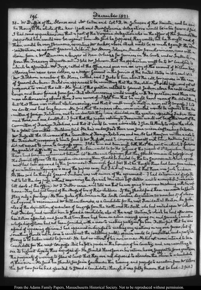 John Quincy Adams diary 32, 21 March 1821 - 30 November 1822 (with gaps), page 196