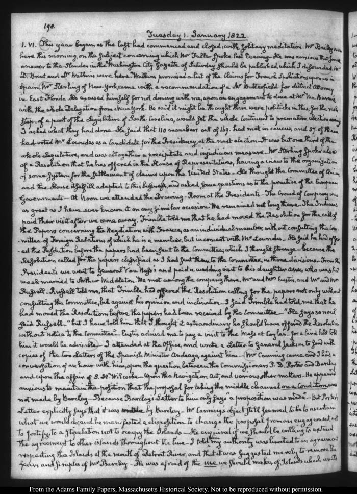 John Quincy Adams diary 32, 21 March 1821 - 30 November 1822 (with gaps), page 198