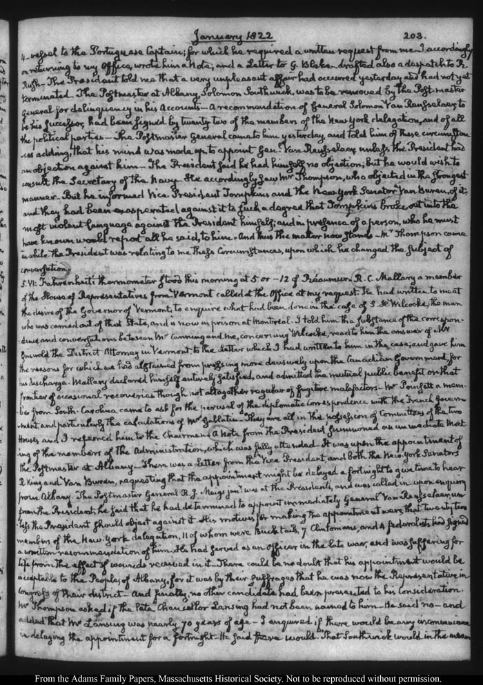 John Quincy Adams diary 32, 21 March 1821 - 30 November 1822 (with gaps), page 203