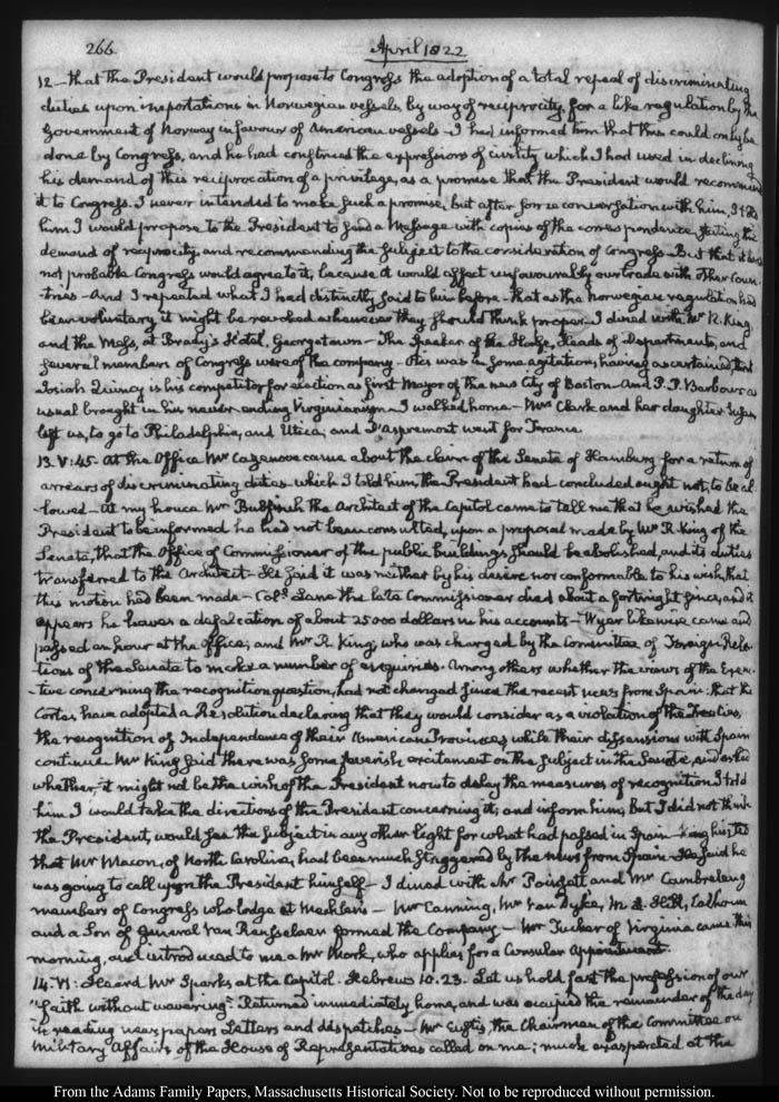 John Quincy Adams diary 32, 21 March 1821 - 30 November 1822 (with gaps), page 266